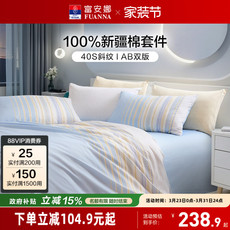 富安娜套件全棉纯棉四件套中性床罩100床单被套学生宿舍三件套新