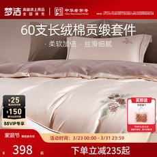 梦洁家纺60支长绒棉床上四件套纯棉全棉100床单被套床笠床品礼物