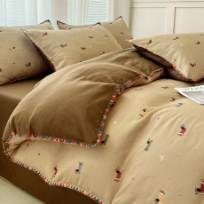 冬季加厚全棉华夫格牛奶绒床上四件套纯棉加绒被套床品床单三件套