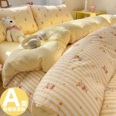 A类母婴级 無印色织水洗棉四季四件套被套纯棉床单日式床笠单双人