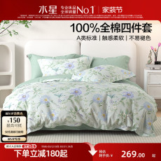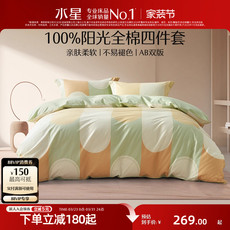 水星家纺全棉四件套100%纯棉印花套件北欧风家用被套床单床上用品