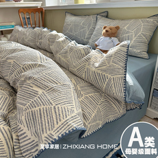 A类床上四件套纯棉2025新款全棉双层纱被套罩学生宿舍床单三件套4