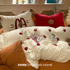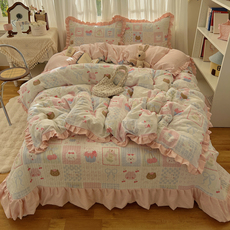 少女全棉磨毛奶油兔子刺绣四件套儿童可爱被套公主风纯棉床单床品
