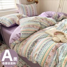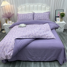 频繁热爱 【芋泥紫】全棉双层纱四件套A类母婴级纯棉荷叶边被套