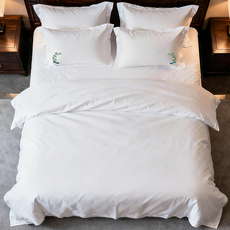 五星级宾馆酒店床上用品布草纯白色床单被套四件套全棉白纯棉民宿