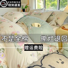 ins四件套纯棉全棉100被套罩宿舍床上三件套床笠被子床单床品用品