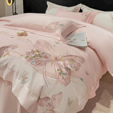 高端轻奢A类新疆长绒棉四件套高支纯棉蝴蝶刺绣被套床笠全棉床品4