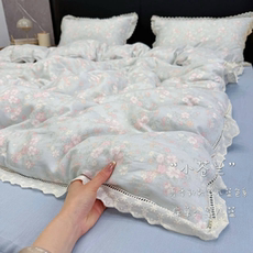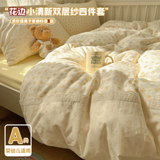法式镂空花边纯棉双层纱四件套A类母婴级裸睡0负担透气防潮ins风