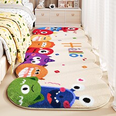 儿童卧室床边地毯家用可爱卡通免洗耐脏地垫主卧房间加厚长条毯子
