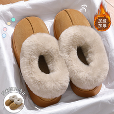 红豆厚底棉拖鞋女士秋冬季2025新款室内家居加绒保暖毛毛拖鞋冬天