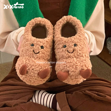 细细条 丑萌可爱小青蛙棉拖鞋冬季男女室内防滑厚底保暖毛毛鞋ins