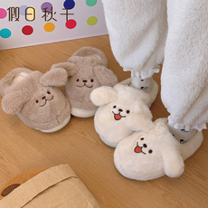 可爱狗狗棉拖鞋女冬季男女情侣外穿加绒加厚居家防滑保暖棉鞋秋千