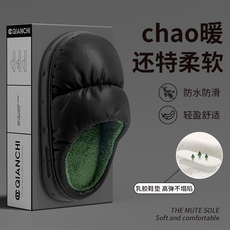细细条 情侣防水羽绒布棉拖鞋男女士冬季防滑厚底保暖居家月子鞋