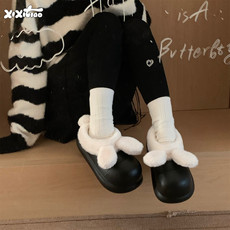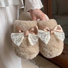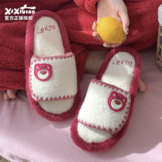 细细条 mikko联名蝴蝶结小熊棉拖鞋网红冬季舒适居家毛绒月子鞋女