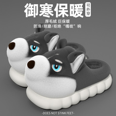 细细条 卧室家用可爱狗狗棉拖鞋男女保暖防滑冬季情侣卡通毛毛鞋