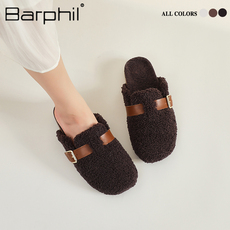 Barphil厚底棉拖鞋女2025年冬季新款保暖加绒外穿防滑毛毛勃肯鞋