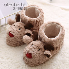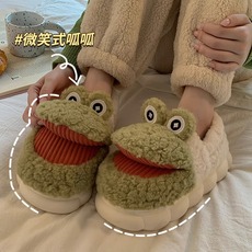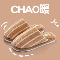 细细条 可爱卡通学生个性棉拖鞋男女冬季包跟保暖家居毛毛鞋情侣
