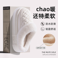 防水棉拖鞋女2025新款秋冬季外穿室内家居加绒厚底踩屎感情侣棉鞋