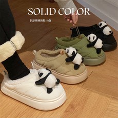 细细条 呆萌可爱熊猫棉拖鞋冬季室内防滑保暖百搭一字毛毛拖鞋女