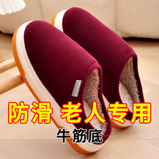 防滑棉拖鞋女冬季老人防摔牛筋底2026新款老年人加绒外穿棉鞋冬天