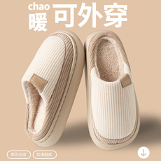细细条 可外穿懒人棉拖鞋冬季情侣时尚居家用防滑防水保暖棉鞋女
