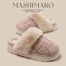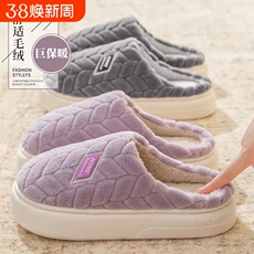 日系简约保暖包头毛绒棉拖鞋女冬季纯色时尚居家防滑厚底月子鞋