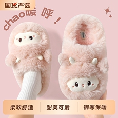 流氓兔棉拖鞋女秋冬季2025新款室内家居厚底防滑保暖毛毛绒棉拖男