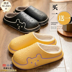 【买一送一】新款棉拖鞋女冬天家居情侣室内厚底防滑PU皮拖鞋冬季