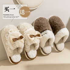 买一送一棉拖鞋女款冬季2025新款室内家居一对毛绒保暖情侣棉拖男