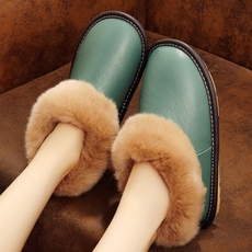 拖鞋家用秋冬女情侣防滑棉拖鞋男防水PU皮冬季保暖软底毛绒室内