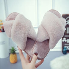 细细条 立体小羊一字毛毛棉拖鞋女可爱防滑秋冬季学生舒适居家鞋
