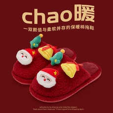 新款圣诞麋鹿棉拖鞋男女秋冬季可爱卡通居家防滑情侣室内毛绒棉鞋