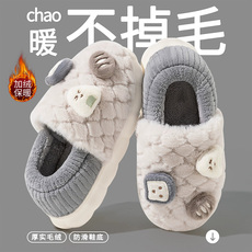 棉拖鞋女冬家用家居保暖室内防滑情侣秋冬季毛毛软底男士棉拖冬天