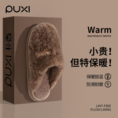朴西毛绒厚底棉拖鞋男款2025新款秋冬季家居室内防滑保暖舒适棉拖