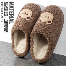 细细条 居家室内保暖时尚月子鞋男女冬季日系卡通小熊情侣棉拖鞋