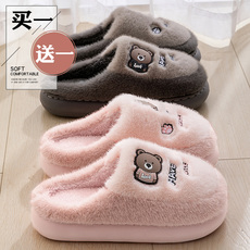 棉拖鞋女秋冬季可爱卡通家居室内防滑情侣月子家用保暖毛绒拖鞋男