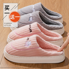 买一送一流氓兔冬季踩屎感棉拖鞋女可爱软底家居家一对防滑卡通男