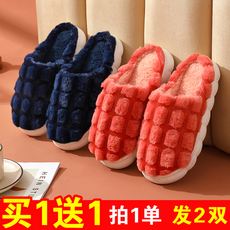 买一送一棉拖鞋女冬季居家居室内月子加绒情侣防水羽绒布拖鞋男士