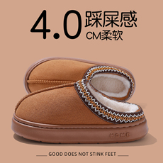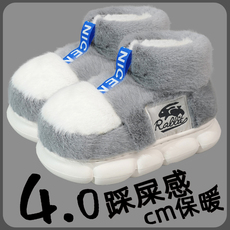 情侣棉拖鞋女冬季加绒包跟厚底毛毛棉靴男大码软底防滑保暖居家鞋