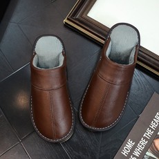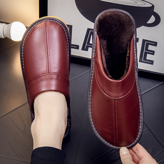 海宁皮拖鞋冬季居家居男女真皮地板拖鞋牛筋底室内情侣保暖棉拖鞋