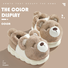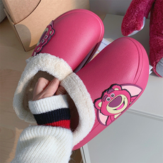 细细条 网红可爱草莓熊棉拖鞋冬季新款居家可外穿保暖防水亲子鞋