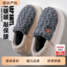 居家家秋冬季棉拖鞋保暖防滑毛绒厚底室内棉拖居家透气防臭毛拖鞋
