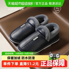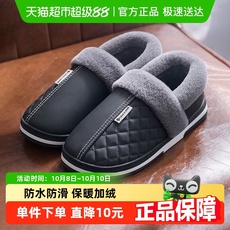利达妮防水皮拖鞋男士冬季2025新款室内居家保暖厚底加绒棉拖鞋女