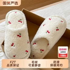 FZT可爱樱桃棉拖鞋女款秋冬季2025新款卧室居家防滑毛绒地板拖鞋