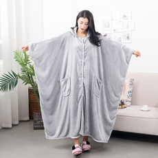 加厚秋冬季披肩毯午睡毯法兰绒空调毯斗篷懒人披风打坐多功能毛毯