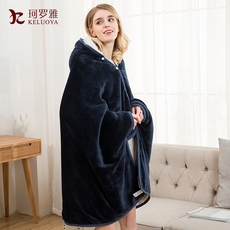 秋冬加厚保暖法兰绒双层懒人披肩毛毯办公室学生午睡斗篷披风毯子