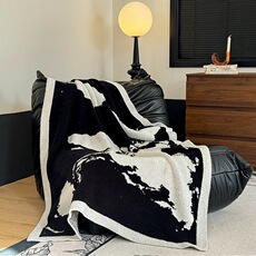秋冬简约黑白半边绒高级毛毯卧室盖毯亲肤加厚办公室午睡沙发毯子