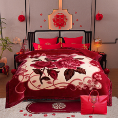 大红色毛毯结婚陪嫁冬季加厚高级婚庆双喜毛毯双人盖毯陪嫁送礼毯