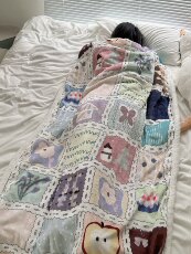 M.life 卡通小猫半边绒毛毯秋冬加厚午睡盖毯可爱居家休闲针织毯