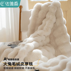 轻奢兔毛绒毛毯冬季加厚盖毯皮草沙发毯子高级感办公室午睡小被子